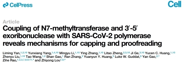 [1] Liming Yan et al., (2021) Coupling ofN7-methyltransferase and 3′-5′ exoribonuclease with SARS-CoV-2 polymerasereveals mechanisms for capping and proofreading. Cell DOI:https://doi.org/10.1016/j.cell.2021.05.033