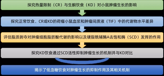 该研究支持一个模型,即CR通过改变肿瘤脂质可用性来抑制肿瘤生长,同时也抑制肿瘤SCD活性,无论是外源性SCD表达还是HFCR-Palm,或通过恢复肿瘤18:1(n-9)/18:0比例,可以减轻饮食的抗肿瘤作用。KD对肿瘤生长的影响可能依赖于膳食脂肪组成,这与KD- palm增加肿瘤SFAs的模型一致,后者与KD介导的肿瘤SCD抑制协同作用,损害肿瘤生长。
