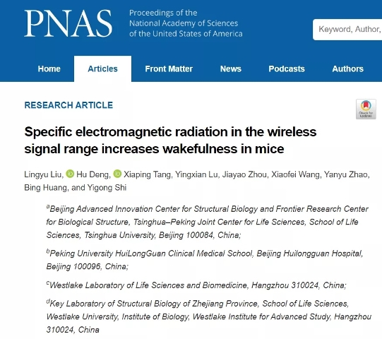 近期,清华大学/西湖大学施一公团队在PNAS 在线发表题为“Specific electromagnetic radiation in the wireless signal range increases wakefulness in mice”的研究论文,该研究报告了无线范围 EMR 对小鼠睡眠的影响。