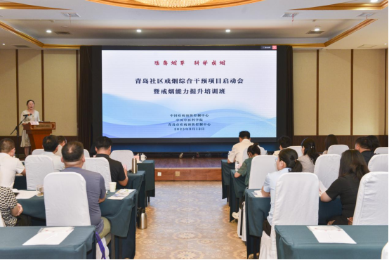 9月12日,青岛社区戒烟综合干预项目正式启动。中国疾控中心控烟办公室主任肖琳、副研究员南奕、中国中医科学院中医基础理论研究所所长杨金生、中国中医科学院针灸研究所主任医师王莹莹、青岛市卫生健康委员会爱卫办、中医处及城阳、西海岸新区项目有关单位负责人出席启动会。会上,相关负责人就试点项目总体方案、工作要求及实施工具包介绍、评估问卷讲解、青岛市项目点实施要求等内容对参会人员进行培训。